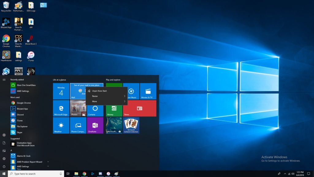 If you want to customize your tiles, right click them. Now you can unpin, resize, pin to taskbar and more. You tile dashboard is meant to be an all-inclusive display, so having direct control of it is awesome. Make it your own, and have it show all the info you want at a glance! Remember, Windows 10 was made to be a great desktop OS and a great tablet interface in one.