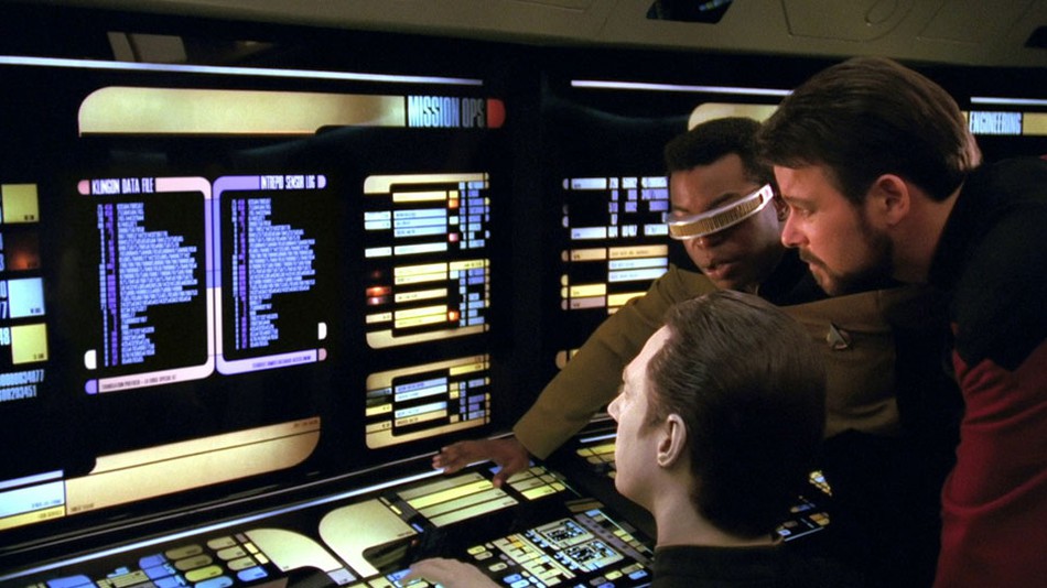 Characters calling up commands by shouting at the computer is a quintessential Star Trek move. Having voice-controlled computer functions sidestepped the issue of having characters explain what they’re doing with a computer. You’ve certainly seen other shows where a character at a keyboard has to explain to another character what it is they’re doing. Sometimes this is fine, other times it feels weird and forced. Star Trek just used high-tech voice commands to communicate effectively and move scenes along.