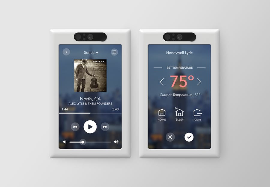 Next step set the mood, for 3 main light switched I installed the Brilliant Smart Panel. With the digital touch screen or simple verbal commands, this switch can control your homes lights, air conditioning, intercom system, video surveillance, music and has a built in camera and even the ability to make video calls.
